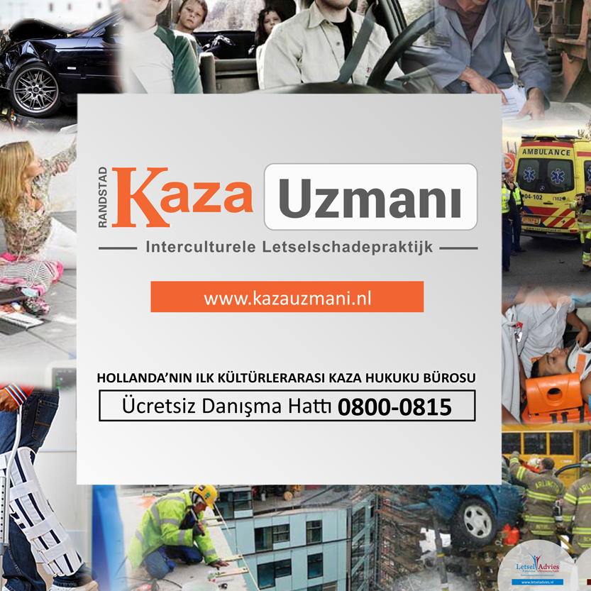 Kaza Uzmanı, kaza sonucu ölüm ve sakatlanma durumunda danışmanlık faaliyetleri göstermektedir. Hollanda’da eksikliği büyük ölçüde hissedilen, kendi dilinizde hizmetlerin yerine getirilmesi ve bu kapsamdaki kazalarda hak talep etme konusunda, danışmanlık görevini üstlenmiştir.